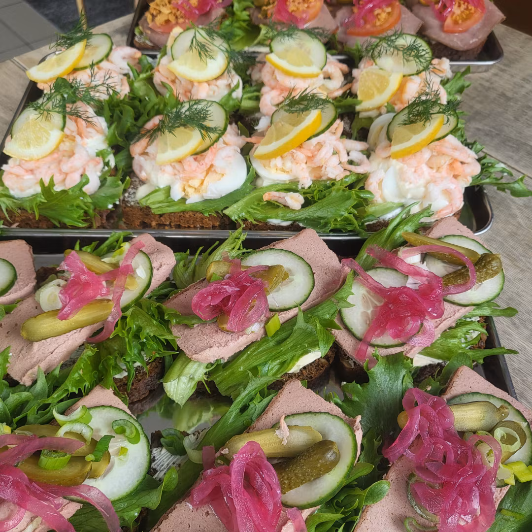 Smörrebröd från 49kr/st . Se kylen vilka som finns just idag eller kontakta oss innan beställning. Så just er beställning finns.